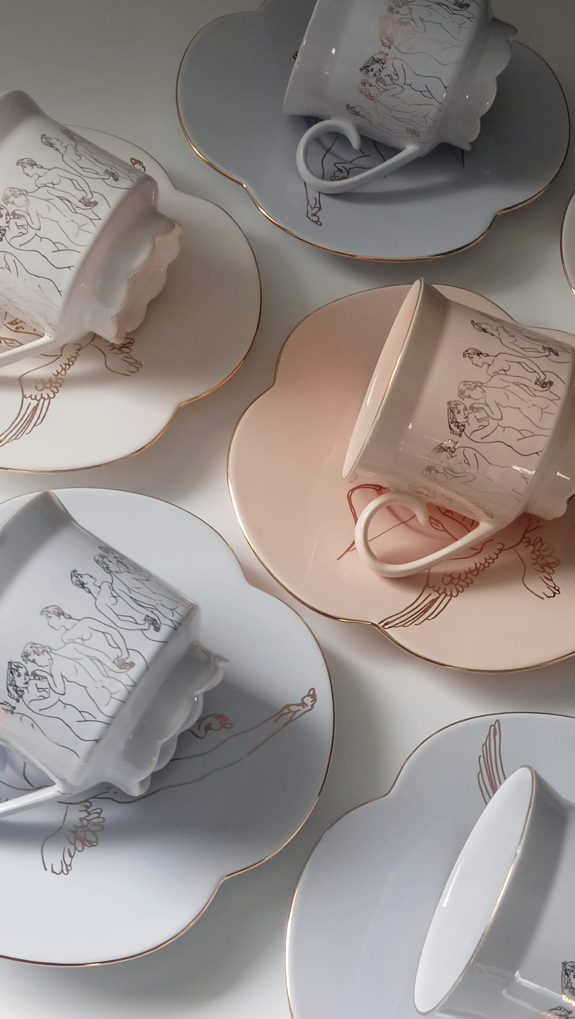 Podobno szczęśliwym się bywa i dla każdego jest to z goła coś innego. Jak pisała brytyjska filozofka Irys Murdoch "Jedną z tajemnic szczęśliwego życia, są nieustanne maleńkie uczty" Filiżanka została stworzona właśnie z myślą o takich ucztach. Celebrowaniu prostych czynności. Mai Berezowskiej "WIOSNA" to hołd oddany tej niesamowitej artystce, która mimo trudnych losów podążała za pięknem. FORTUNA to klasyczna nowoczesność połączona z wygodą. Jest początkiem serwisu. Materiały: FORTUNA wykonana jest z najlepszej jakościowo polskiej porcelany w ciepłym białym odcieniu produkowanej lokalnie w Wałbrzychu i wypalana w temperaturze 1250C, złocona 24karatowym złotem. Ma bardzo wygodne uszko i wywinięty płatek na usta. Najlepszej jakości polska masa porcelanowa produkowana lokalnie w Wałbrzychu i wypalana w temperaturze 1250C. Szkliwa posiadają atest przydatności do kontaktu z żywnością i są produkowane w Polsce. Filiżanki ze złoceniami malowane są prawdziwym złotem wypalanym w temperaturze 830C; jest ono również bezpieczne w kontakcie z żywnością. W przypadku produktów złoconych polecam mycie ręczne. Produkty bez złoceń można myć w zmywarce. Proces: Naczynia są odlewane w formach gipsowych z płynnej porcelany, następnie ręcznie retuszowane, malowane dekoracją podszkliwną i wypalane wstępnie w temperaturze 860C,na tak zwany biskwit. W kolejnym etapie ręcznie szkliwione, po czym ponownie wypalane na ostro w temperaturze 1250C. W końcowym etapie ,( trzecim) ceramika jest malowana złotem i ponownie wypalana w temperaturze 830C. Czas realizacji produktu na zamówienie wynosi ok.2-4 tygodni roboczych. Każde zamówienie rozpatruje jednak indywidualnie; z przyczyn niezależnych ode mnie podany czas może ulec wydłużeniu. Wymiary: wysokość ze spodeczkiem: 9,5 cm średnica filiżanki: 8 cm średnica spodeczka: 18 cm Pojemność: 250ml