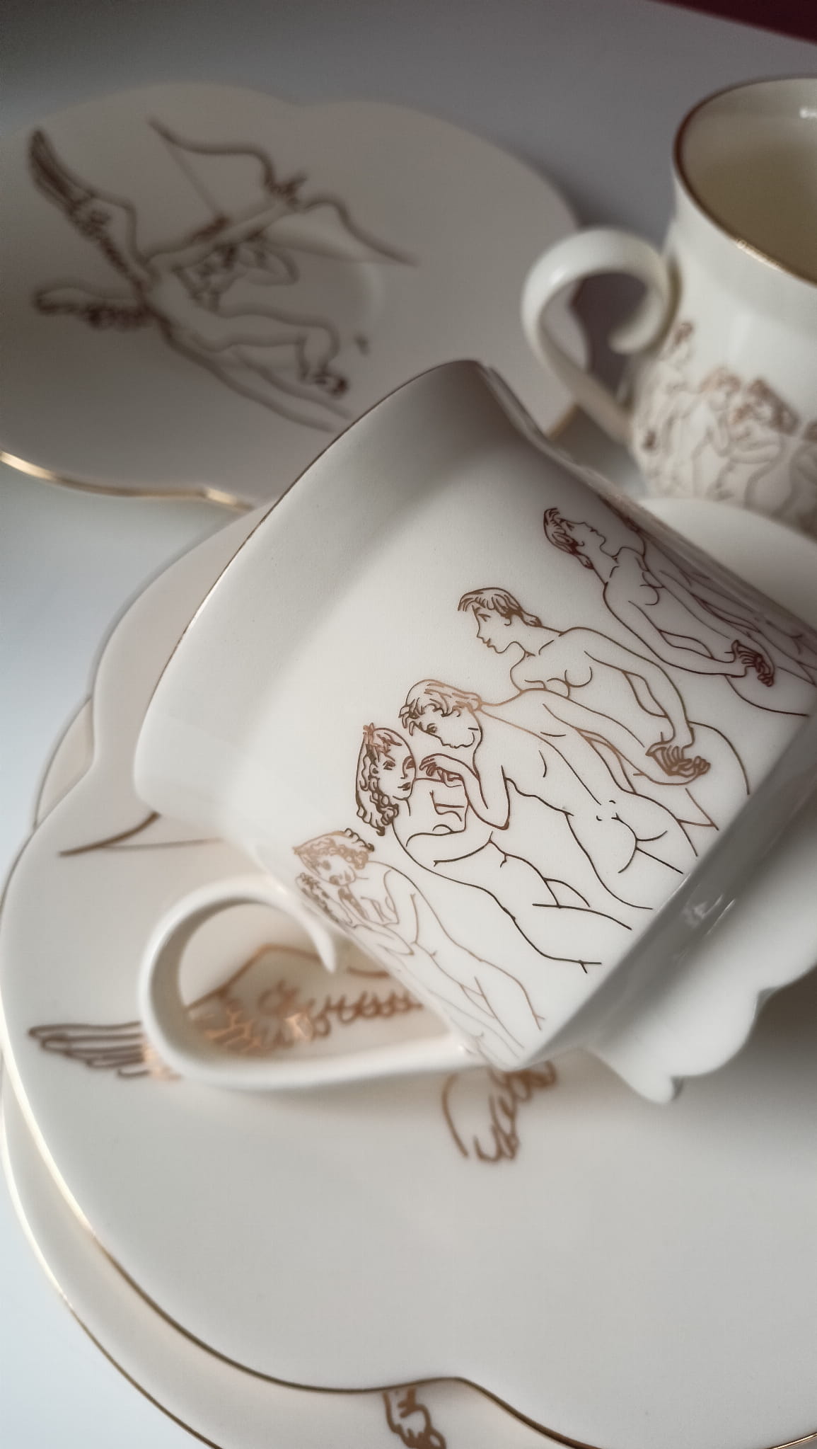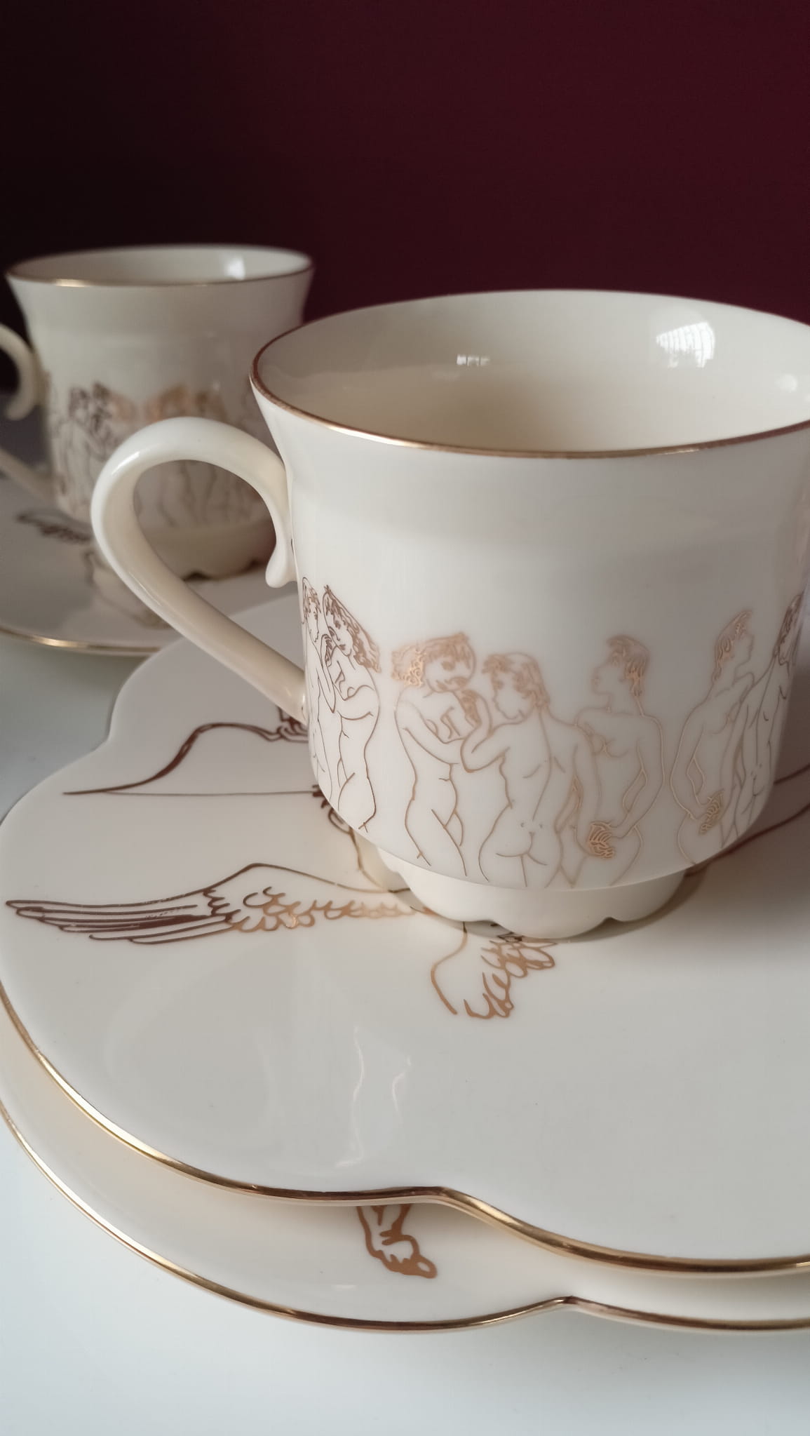 Podobno szczęśliwym się bywa i dla każdego jest to z goła coś innego. Jak pisała brytyjska filozofka Irys Murdoch "Jedną z tajemnic szczęśliwego życia, są nieustanne maleńkie uczty" Filiżanka została stworzona właśnie z myślą o takich ucztach. Celebrowaniu prostych czynności. Mai Berezowskiej "WIOSNA" to hołd oddany tej niesamowitej artystce, która mimo trudnych losów podążała za pięknem. FORTUNA to klasyczna nowoczesność połączona z wygodą. Jest początkiem serwisu. Materiały: FORTUNA wykonana jest z najlepszej jakościowo polskiej porcelany w ciepłym białym odcieniu produkowanej lokalnie w Wałbrzychu i wypalana w temperaturze 1250C, złocona 24karatowym złotem. Ma bardzo wygodne uszko i wywinięty płatek na usta. Najlepszej jakości polska masa porcelanowa produkowana lokalnie w Wałbrzychu i wypalana w temperaturze 1250C. Szkliwa posiadają atest przydatności do kontaktu z żywnością i są produkowane w Polsce. Filiżanki ze złoceniami malowane są prawdziwym złotem wypalanym w temperaturze 830C; jest ono również bezpieczne w kontakcie z żywnością. W przypadku produktów złoconych polecam mycie ręczne. Produkty bez złoceń można myć w zmywarce. Proces: Naczynia są odlewane w formach gipsowych z płynnej porcelany, następnie ręcznie retuszowane, malowane dekoracją podszkliwną i wypalane wstępnie w temperaturze 860C,na tak zwany biskwit. W kolejnym etapie ręcznie szkliwione, po czym ponownie wypalane na ostro w temperaturze 1250C. W końcowym etapie ,( trzecim) ceramika jest malowana złotem i ponownie wypalana w temperaturze 830C. Czas realizacji produktu na zamówienie wynosi ok.2-4 tygodni roboczych. Każde zamówienie rozpatruje jednak indywidualnie; z przyczyn niezależnych ode mnie podany czas może ulec wydłużeniu. Wymiary: wysokość ze spodeczkiem: 9,5 cm średnica filiżanki: 8 cm średnica spodeczka: 18 cm Pojemność: 250ml