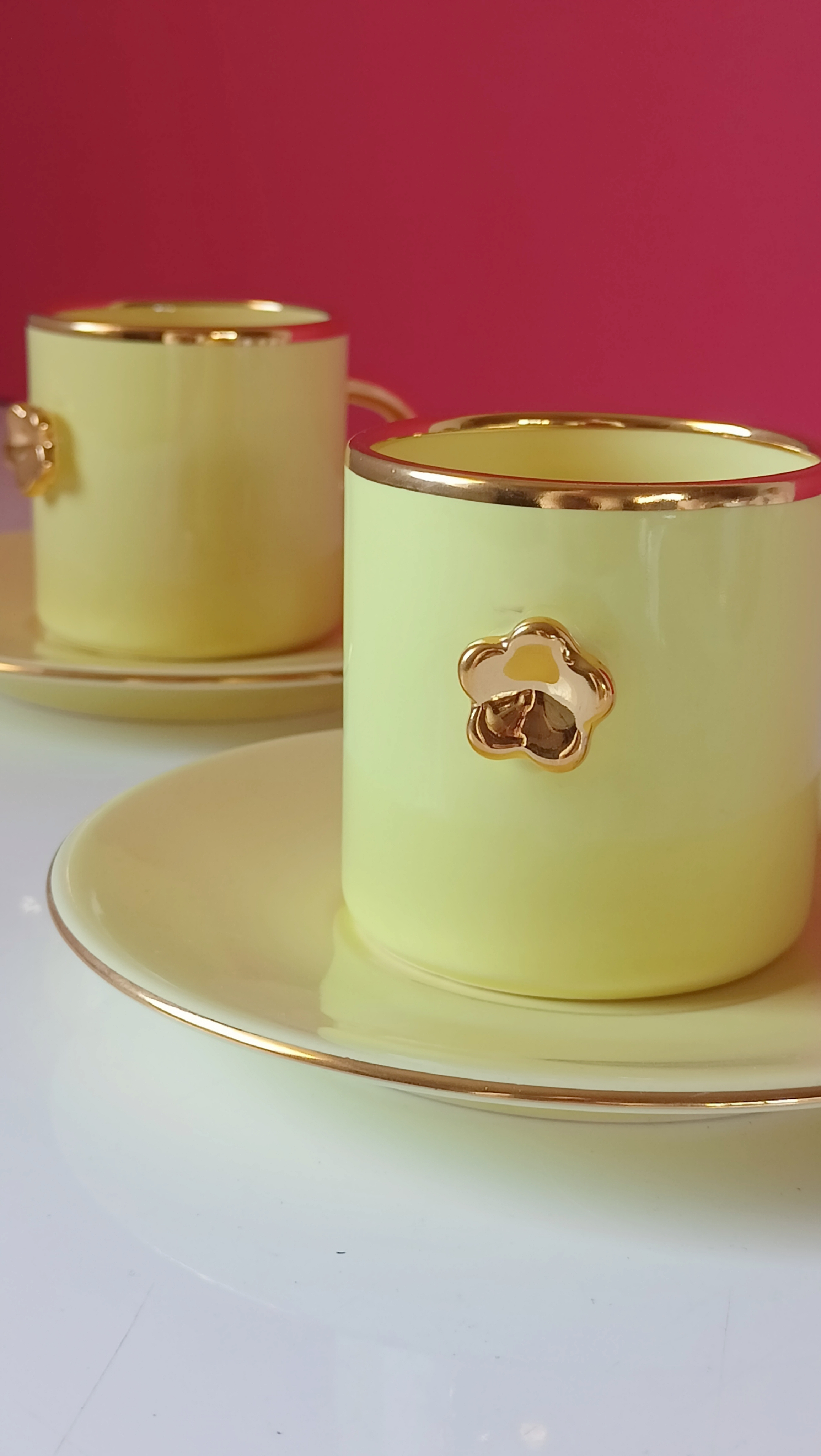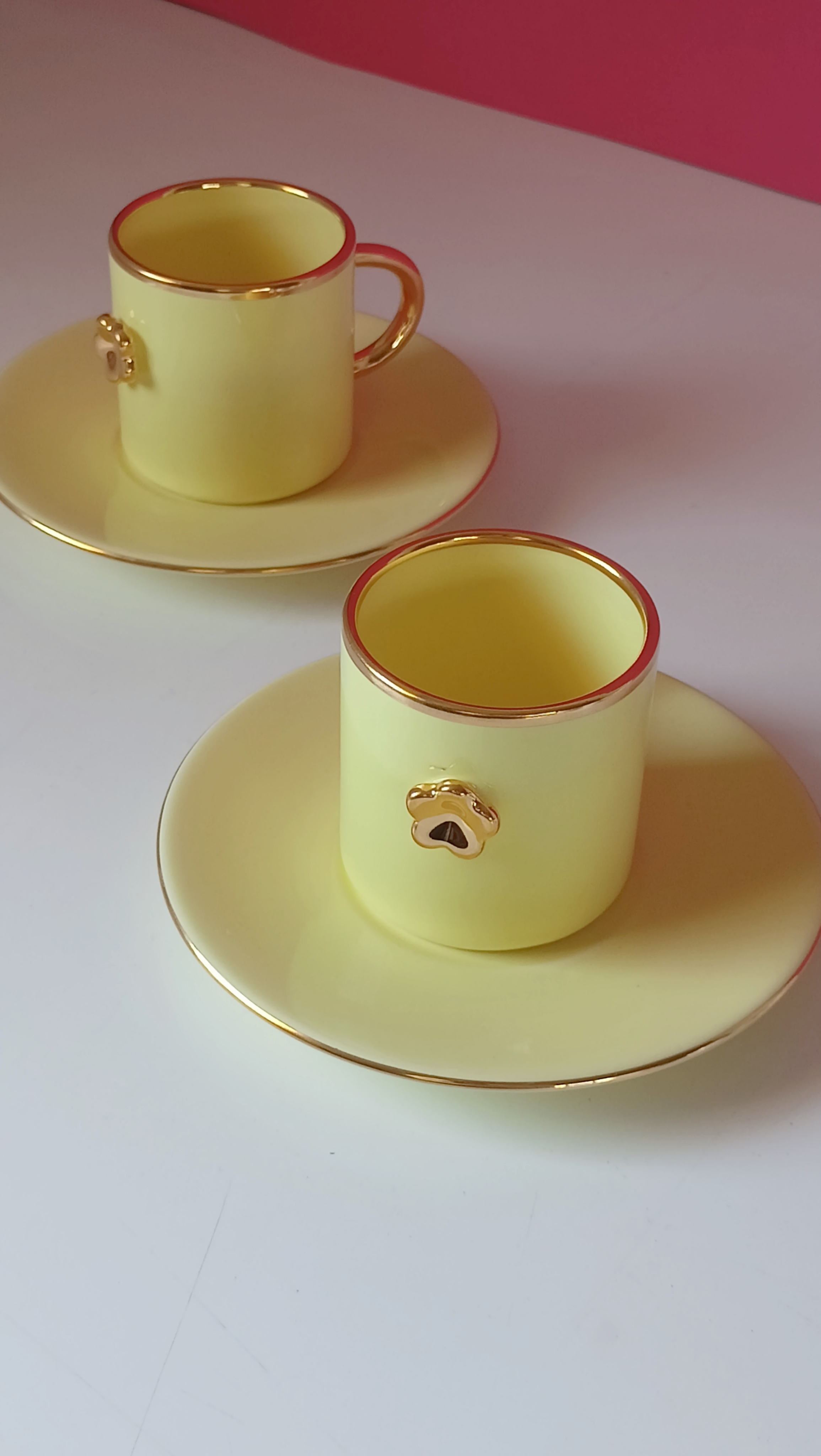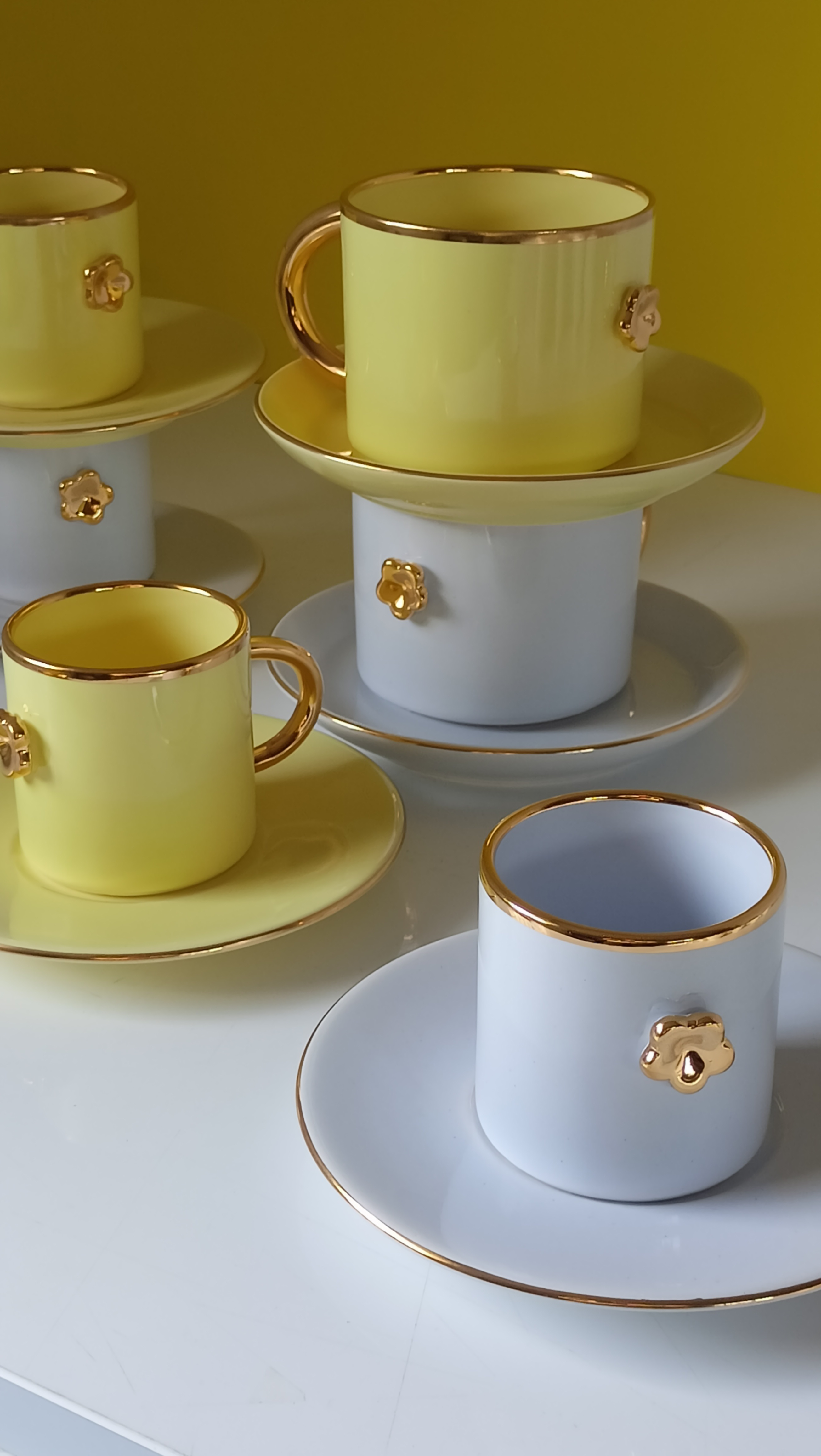Filiżanka DAISY YELLOW 150 ml ze złotym kwiatkiem i charakterystycznym złotym uchem w kształcie podkowy, ma swój unikatowy i niepowtarzalny charakter. Jest delikatna i subtelna w kolorze. Pięknie prezentuje się z kawą w towarzystwie koloru Lila lub Ecru. To większą wersja ARTespresso. Wspaniale komponuje się na eleganckim stole, wśród kwiatów, owoców , świetnie sprawdzi się również w prostszych i minimalistycznych wnętrzach.Doskonała na popołudniową kawę. Uzupełnieniem do tej serii może być ARTespresso lub duże kubki cappuccino 300ml w pasy lub DAISY 300ML.