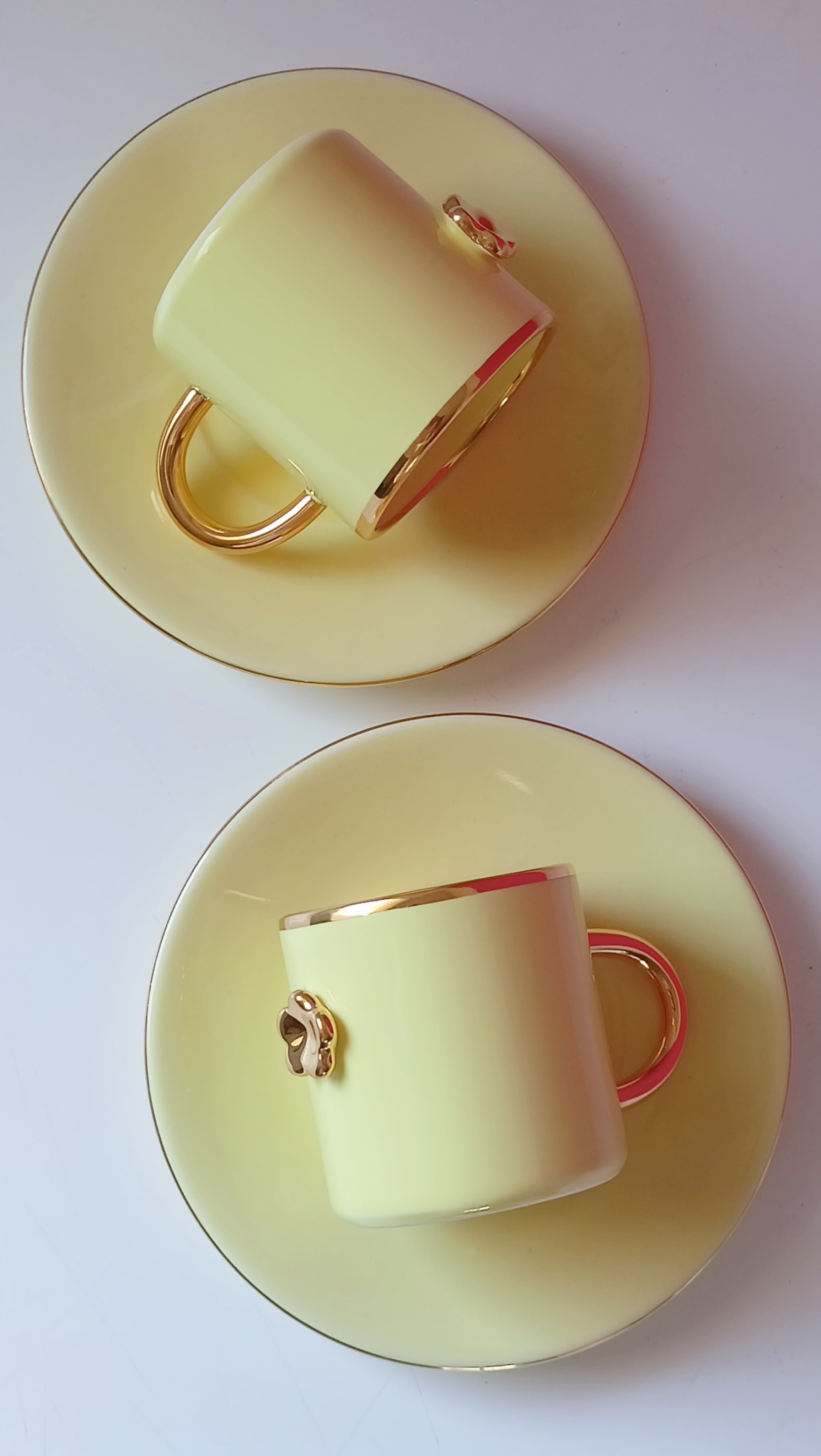 Filiżanki ze złoceniami malowane są prawdziwym złotem wypalanym w temperaturze 830C; jest ono również bezpieczne w kontakcie z żywnością.