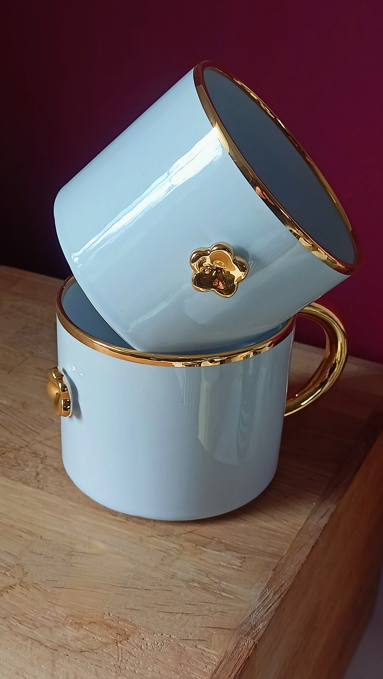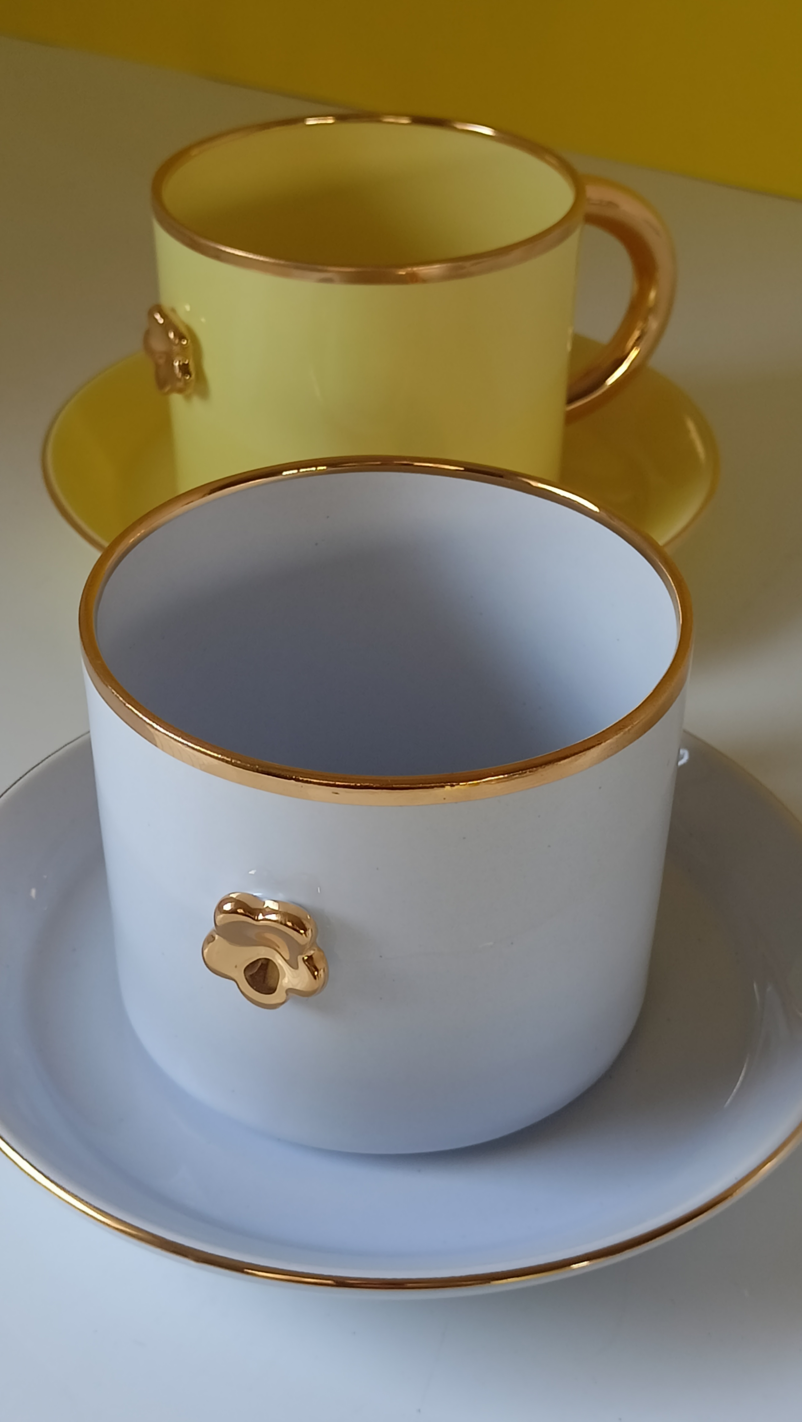 Projekt: Karolina Szeląg Kubek z serii DAISY z charakterystycznym małym złotym kwiatkiem i uchem w kształcie podkowy, to uniwersalny prezent na każdą okazję. Subtelnie wyraża gest miłości, podziękowań, serdeczności, przywiązania. Stworzony została z myślą o wszystkich , którzy cenią sobie klasyczną formę i nienachalną elegancję. Występuję w kilku kolorach i świetnie komponuje się z seria IN LOVE . Wszystkie kolory doskonale się uzupełniają. Materiały: Najlepszej jakości polska masa porcelanowa produkowana lokalnie w Chodzieży i wypalana w temperaturze 1250C. Ze względu na ręczny charakter pracy oraz użycie naturalnych pigmentów, szkliw kolor porcelany oraz szkliw może różnić się w zależności od partii. Szkliwa posiadają atest przydatności do kontaktu z żywnością i są produkowane w Polsce. Filiżanki ze złoceniami malowane są prawdziwym złotem wypalanym w temperaturze 830C; jest ono również bezpieczne w kontakcie z żywnością. W przypadku produktów złoconych polecam mycie ręczne. Produkty bez złoceń można myć w zmywarce. Proces: Naczynia są odlewane w formach gipsowych z płynnej porcelany, następnie ręcznie retuszowane, malowane dekoracją podszkliwną i wypalane wstępnie w temperaturze 860C,na tak zwany biskwit. W kolejnym etapie ręcznie szkliwione, po czym ponownie wypalane na ostro w temperaturze 1250C. W końcowym etapie ,( trzecim) ceramika jest malowana złotem i ponownie wypalana w temperaturze 830C. Czas realizacji produktu na zamówienie wynosi ok.2-4 tygodni roboczych. Każde zamówienie rozpatruje jednak indywidualnie; z przyczyn niezależnych ode mnie podany czas może ulec wydłużeniu. Wymiary: wysokość: 7,5cm średnica kubka: 9 cm Pojemność: 300ml W przypadku braku dostępności danego produktu, proszę o kontakt mailowy.